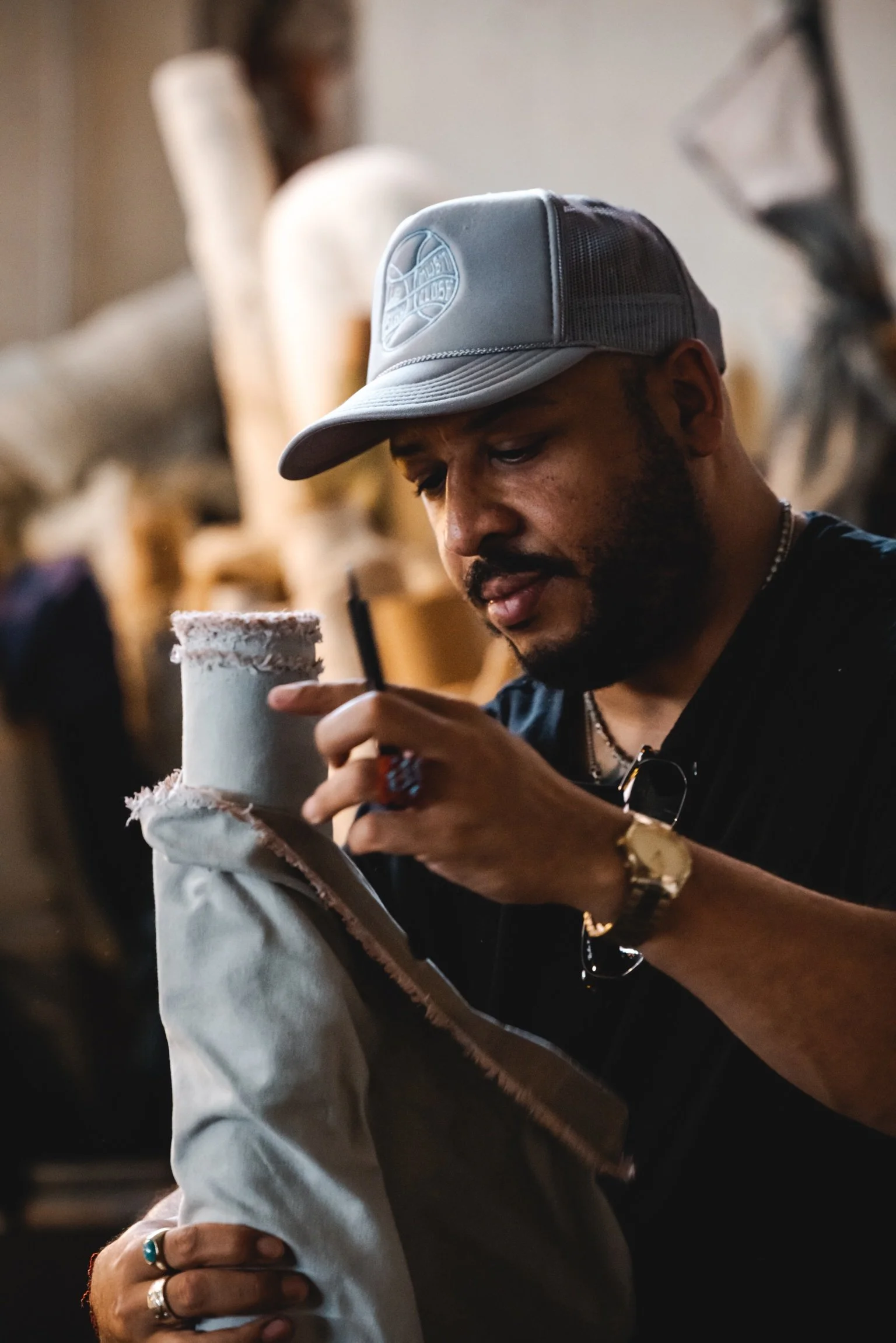 Grounded in the rich continuum of African American history and cultural expression, Robert Hodge’s work celebrates resilience and reclamation, with his commemorations of African American musical and cultural icons serving to both preserve the past and illuminate the present. With a nod to “sampling culture” and Rauschenberg’s principle of working in “the gap between art and life”, Hodge’s collage based works pair urban detritus and found objects with cut-out images, lyrics, and other signifiers of the African-American experience, forming a duality of meaning wherein fragments of everyday urban life become conduits of artistic expression. Cut, sewn, scorched, and painted, Hodge collapses the space between his reclaimed materials and the traditions he invokes, suggesting alternative pathways through the self-described “layer cake” of African American history.